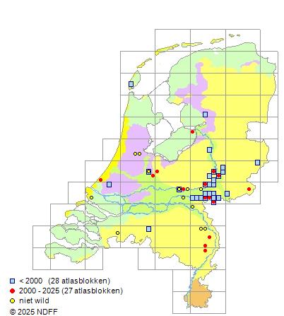 Ze komt zeer zeldzaam voor in het rivierengebied en aangrenzende gebieden in Gelderland en ook op Texel. Ze is een bedreigde soort en staat op de rode lijst als zeer zeldzaam en sterk afgenomen.