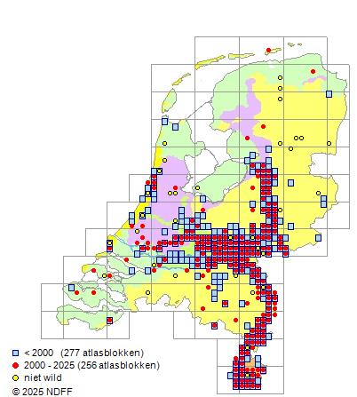 Ze is een typische rivierbegeleidende soort. In het rivierengebied en de aangrenzende gebieden is ze vrij zeldzaam. In Zuid-Limburg is ze zeldzaam en zeer zeldzaam in de overige delen van Nederland.