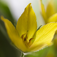 gele bloemen in schijnkransen in langgerekte bebladerde pluimen, kelkbladen geheel groen, kroonbladen gewimperd.