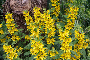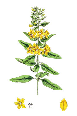 Bewerkte botanische illustratie van puntwederik (Lysimachia punctata).