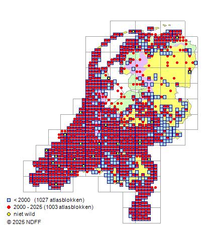 Ze is algemeen in Zeeland en de duingebieden van Noord- en Zuid-Holland, vrij algemeen de rest van Noord- en Zuid-Holland, in Zuid-Limburg en het rivierengebied, elders zeldzaam.