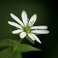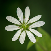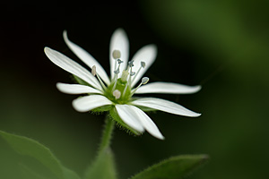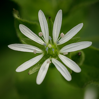 - 5 bijna geheel gespleten witte kroonbladen (lijken er 10) én