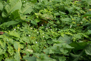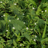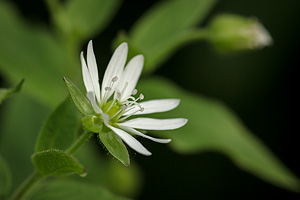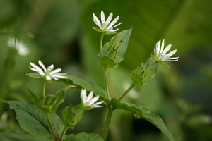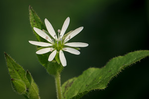 Bewerkte botanische illustratie van watermuur (Myosoton aquaticum).