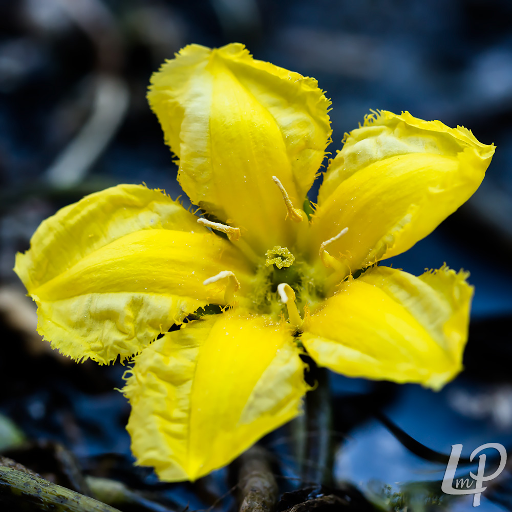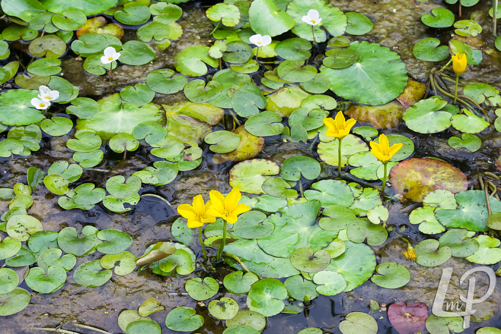 de goudgele, gewimperde bloemen én de kleine, ronde, drijvende bladeren.