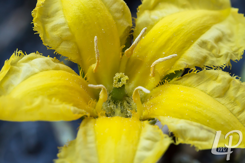 De kroonbladen hebben een donkerder geel, driehoekig middendeel met lichter geel, vliesdunne, brede, gewimperde randen. De bloemen hebben 1 stijl en 5 meeldraden.