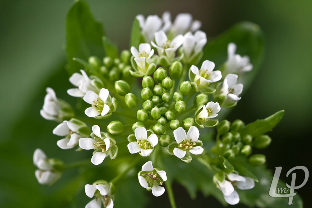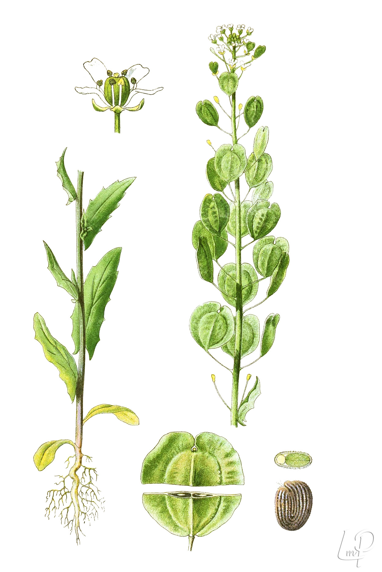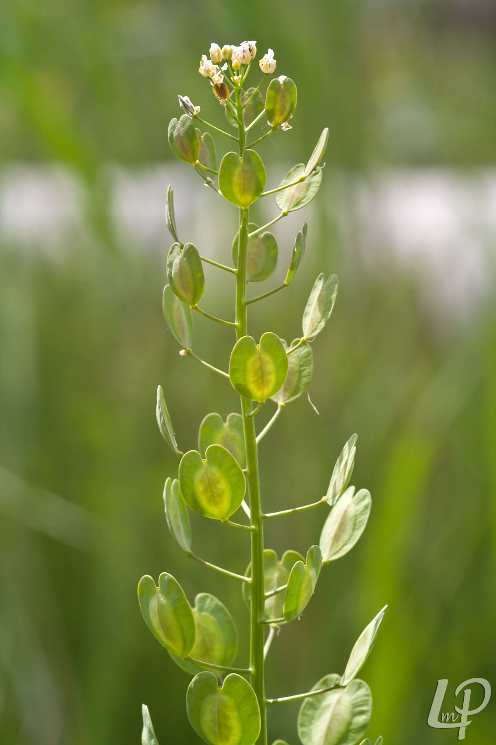 de 4-tallige witte bloemetjes én de bijna ronde, breed gevleugelde, vlakke vruchtjes.