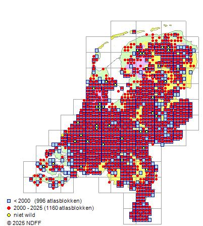 Ze is algemeen voorkomend in Limburg, de duingebieden en het rivierengebied, zeldzaam in Zeeland, het noorden van Noord-Holland, Friesland en Groningen en op de Waddeneilanden.