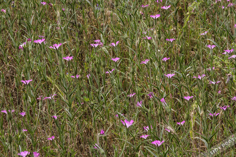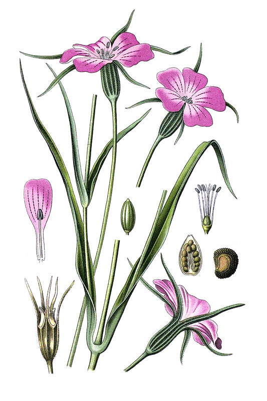 Bewerkte botanische illustratie van bolderik (Agrostemma githago).