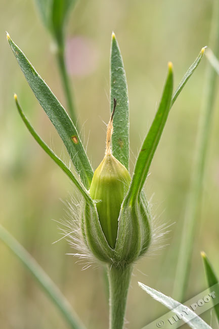 De grijsgroene stengels zijn zwak tot viltig behaard en niet of nauwelijks vertakt. De zacht behaarde bladeren zijn lijnvormig, tot 12 cm lang en met spitse top.