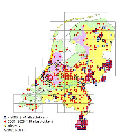 Ze is vrij zeldzaam in Zuid-Limburg, zeldzaam in de rest van Limburg en de Achterhoek, elders zeer zeldzaam.