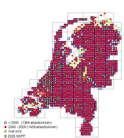 Ze is zeer algemeen voorkomend, behalve in Zeeland, Zuid-Limburg en het noordelijk deel van Groningen en Friesland.