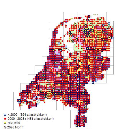 - vrij algemeen in duin- en stedelijke gebieden