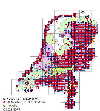 In de duinen is ze algemeen, plaatselijk algemeen in het oosten en midden van het land en in Noord-Brabant, elders adventief met duinzand.