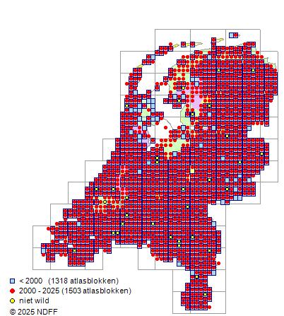 Ze is zeer algemeen voorkomend in het oosten en midden van het land, in Zuid-Limburg, Zeeland en in de Hollandse duinen. Elders is ze vrij zeldzaam.