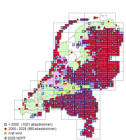 Ze is algemeen voorkomend op de Waddeneilanden, de noordelijke duingebieden van Noord-Holland en in Drenthe, Overijsel, Gelderland, Utrecht, Noord-Brabant en Limburg; vrij zeldzaam in de overige duingebieden, Zuid-Limburg, Zuid-Holland en de onderste helft van Noord-Holland, Friesland en Groningen.