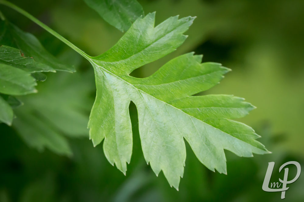 De glanzende, groene, 3- tot 5-lobbige bladeren aan de korte twijgen zijn voor de helft of meer ingesneden. De bladrand is alleen aan de top van de lobben onregelmatig grof gezaagd.