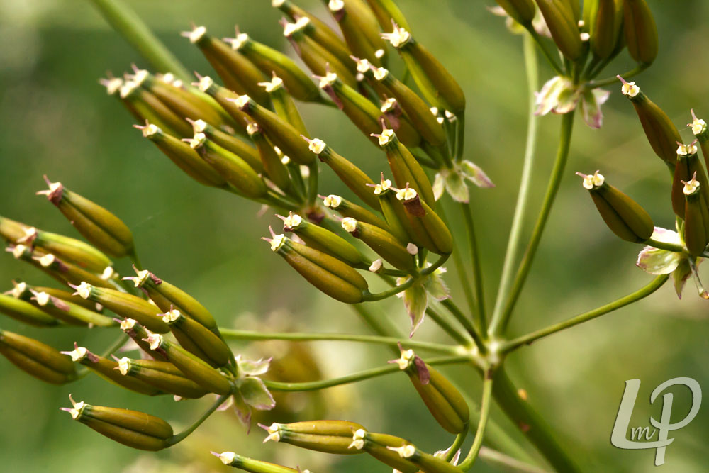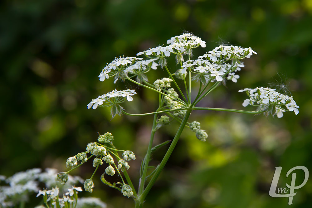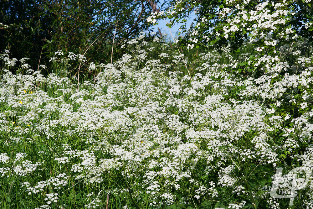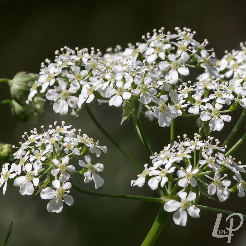 de witte bloemenschermen met kleine bloemetjes, die allemaal 2 kleinere en 3 grotere kroonbladen hebben én de gewimperde omwindselblaadjes én de op de ribben behaarde en aan de rand gewimperde bladscheden.