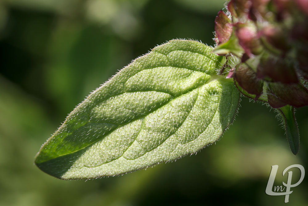 De stengelbladeren zijn behaard, eirond tot langwerpig, hebben een stompe punt en een gave of licht gekartelde rand.