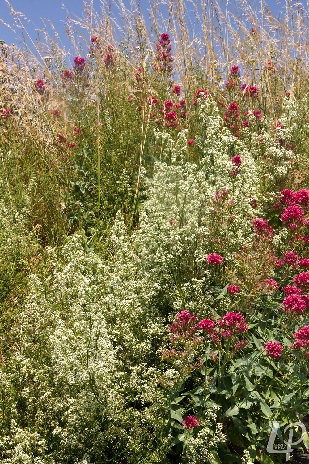 Glad walstro (Galium mollugo) met spoorbloem (Centranthus ruber).