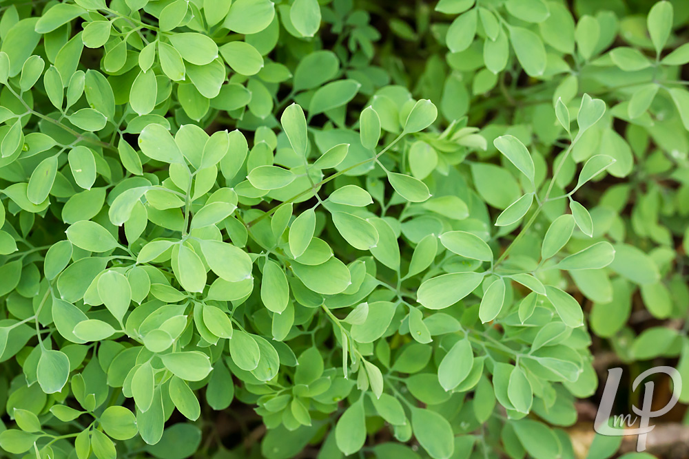 De tere, 2- tot 3-voudig geveerde bladeren zijn enigszins blauwgroen.