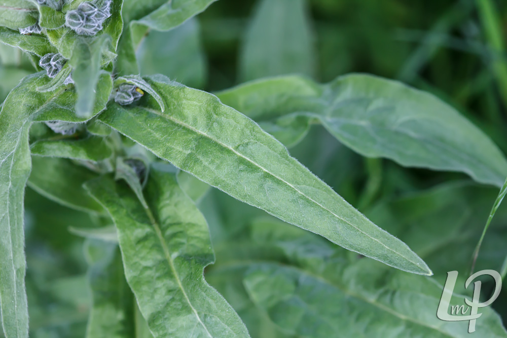 De bladeren zijn langwerpig tot lancetvormig en aan beide zijden behaard.