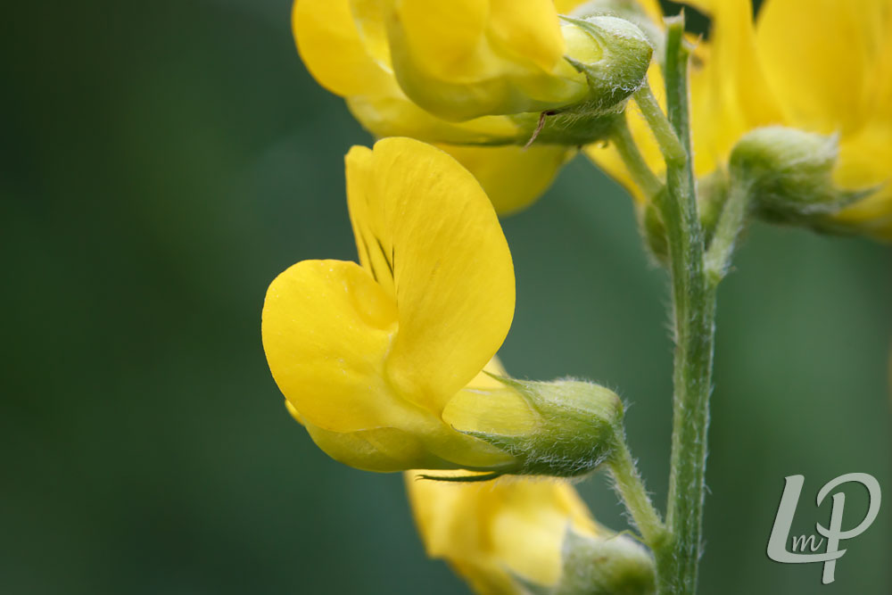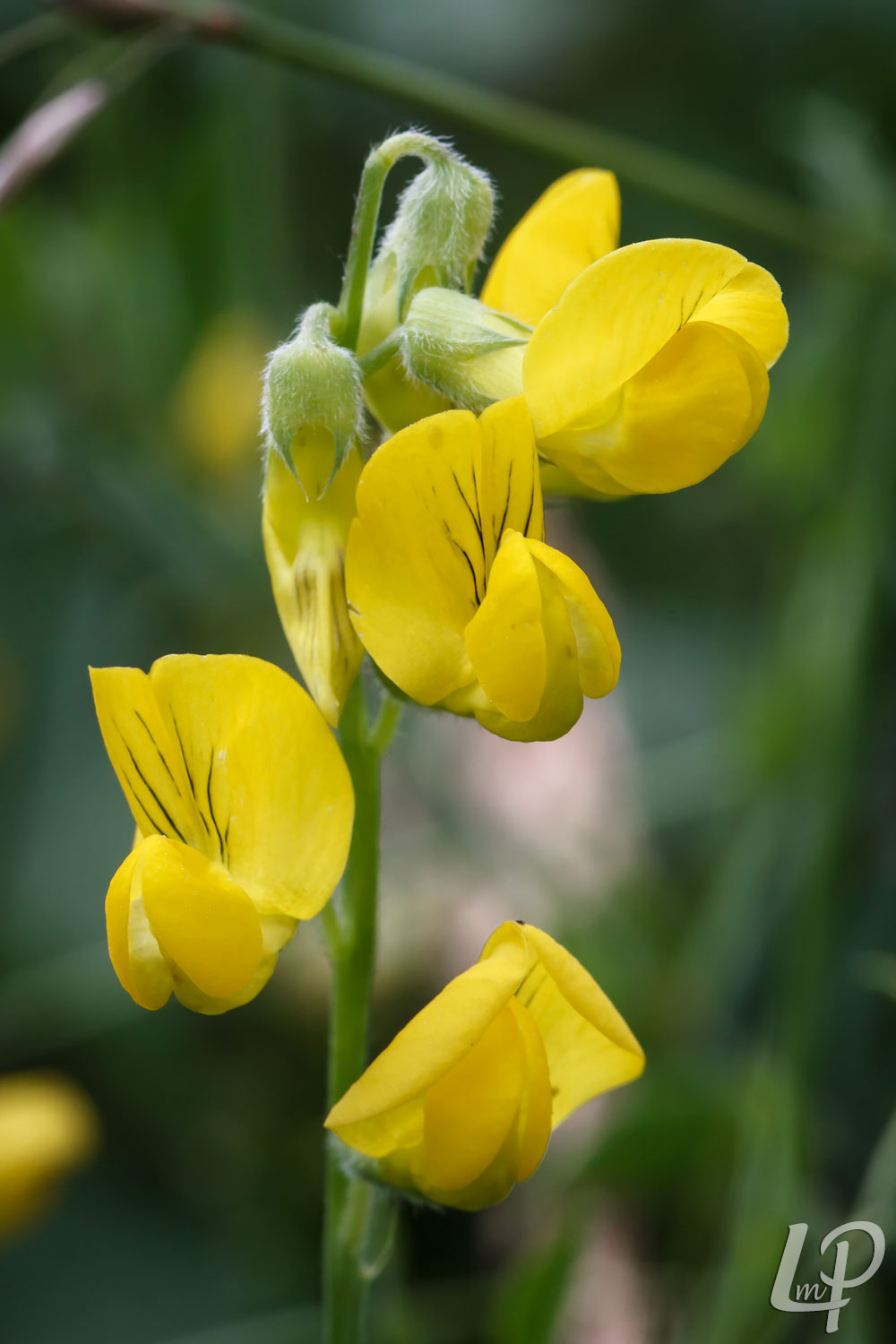 de langgesteelde trossen in de oksels van de bladeren met met gele, licht geurende vlinderbloemen én de samengestelde bladeren, die bestaan uit 1 paar deelbladeren en eindigen in een vertakte of onvertakte rank.