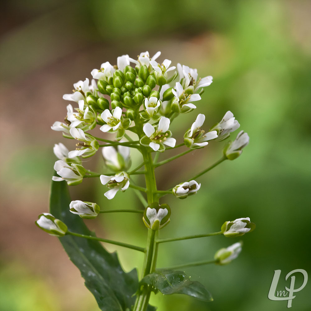 de 4-tallige witte bloemetjes én de bijna ronde, breed gevleugelde, vlakke vruchtjes.