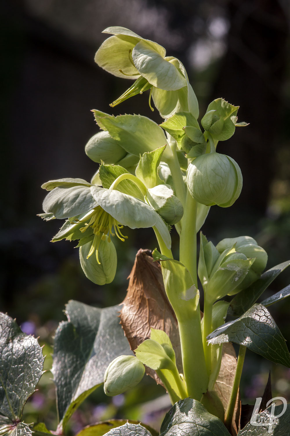 de grote, geelgroene schotelvormige bloemen én de vroege bloeitijd.
